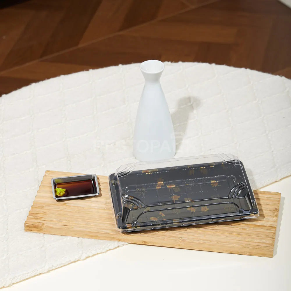 Made from premium food-grade plastic, this durable disposable sushi box is fog-proof, leak- and grease-resistant. It securely holds hot, cold, or wet food without spills, while the double-slot lid design keeps it firmly closed during transport — perfect for sushi, salads, and takeout meals.