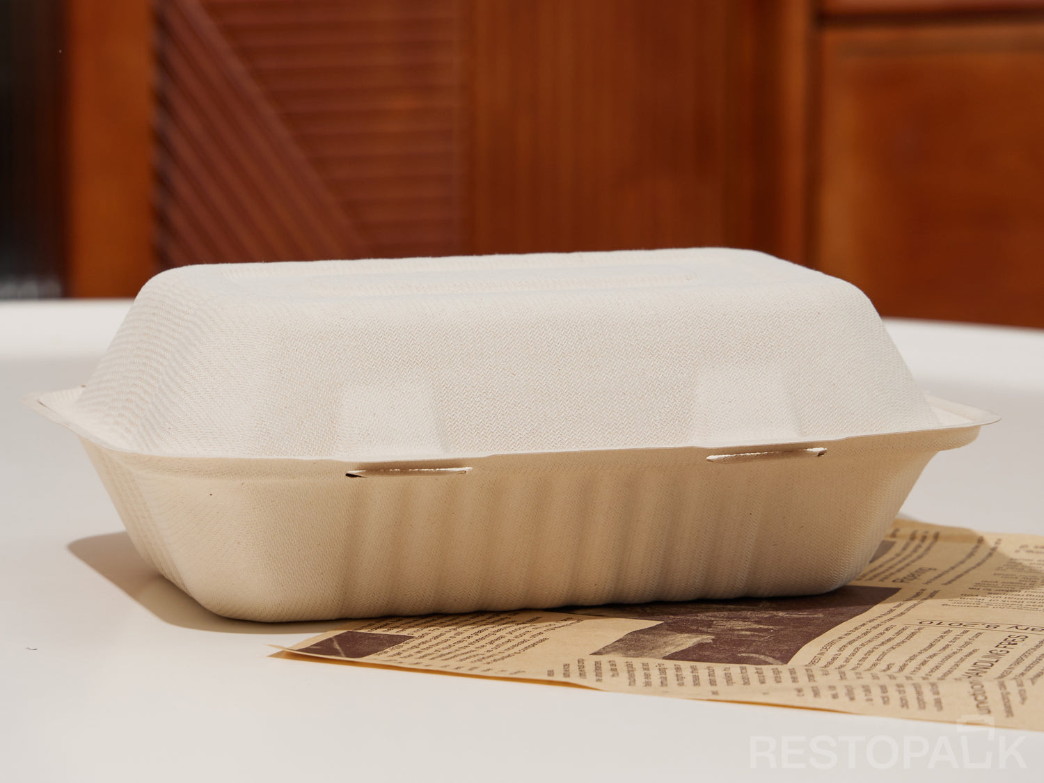 9" × 6" × 3" Compostable Sugarcane Bagasse Square Food Box