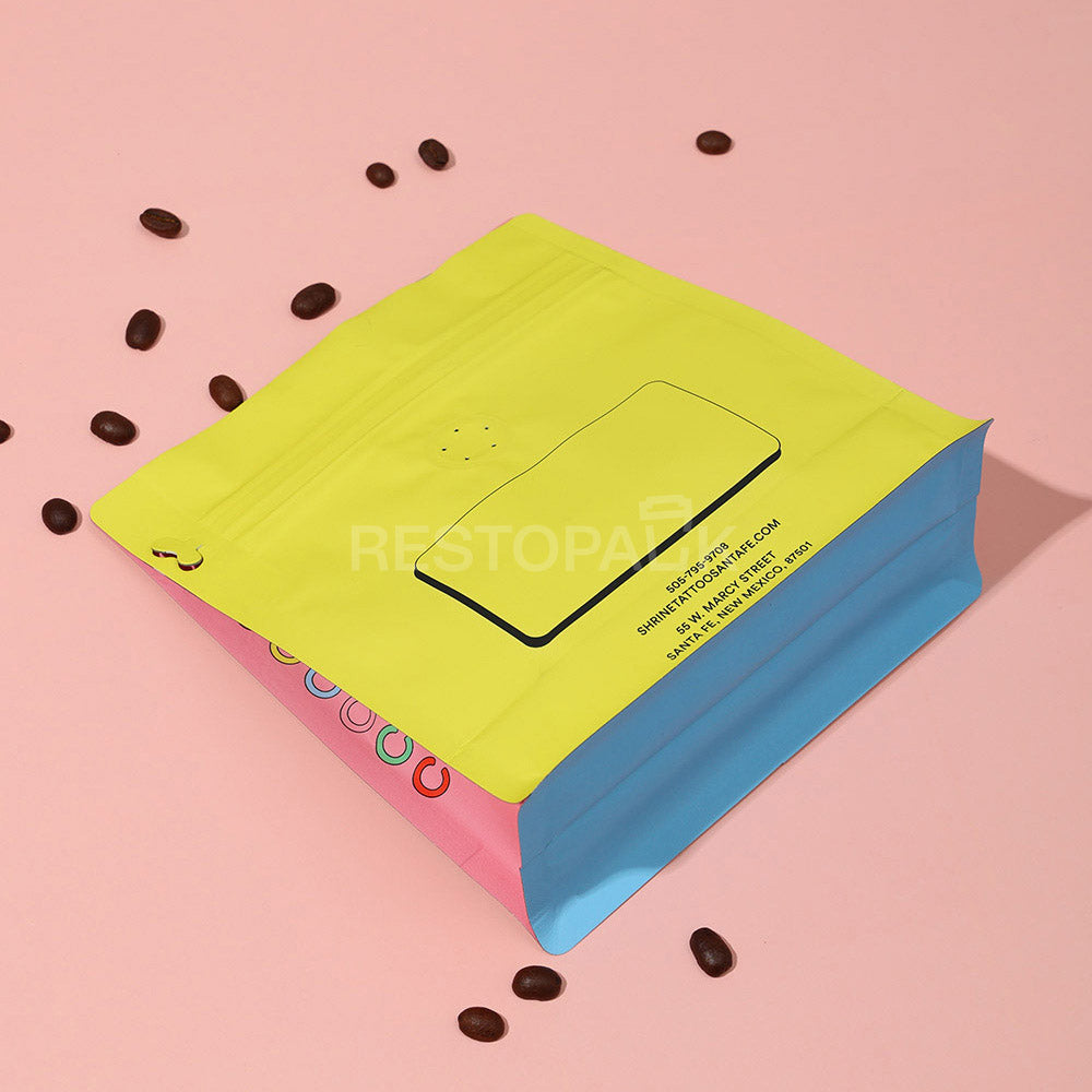 Custom Smooth Flat Bottom Coffee Bags with Unique Color on Each Side