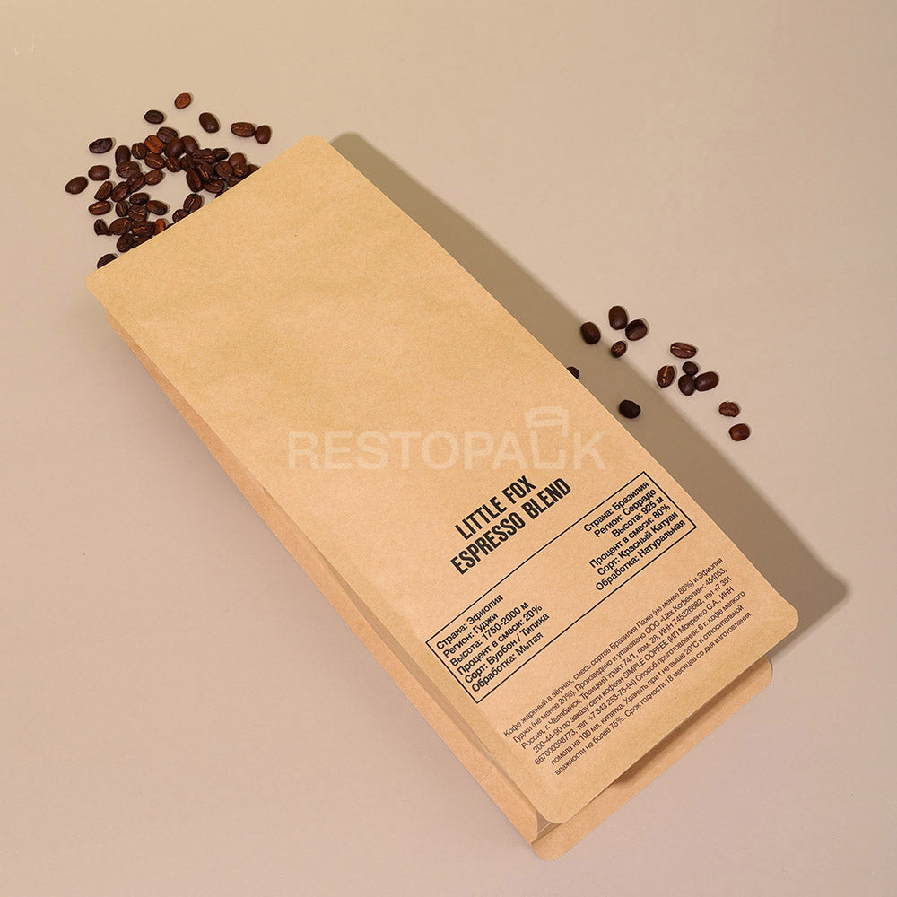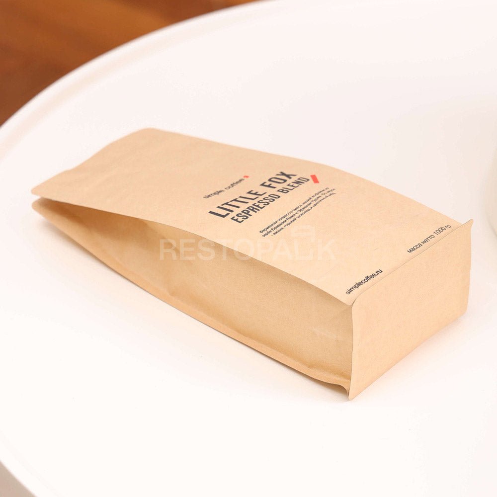 Custom Kraft Paper Flat Bottom Coffee Bags with Zipper