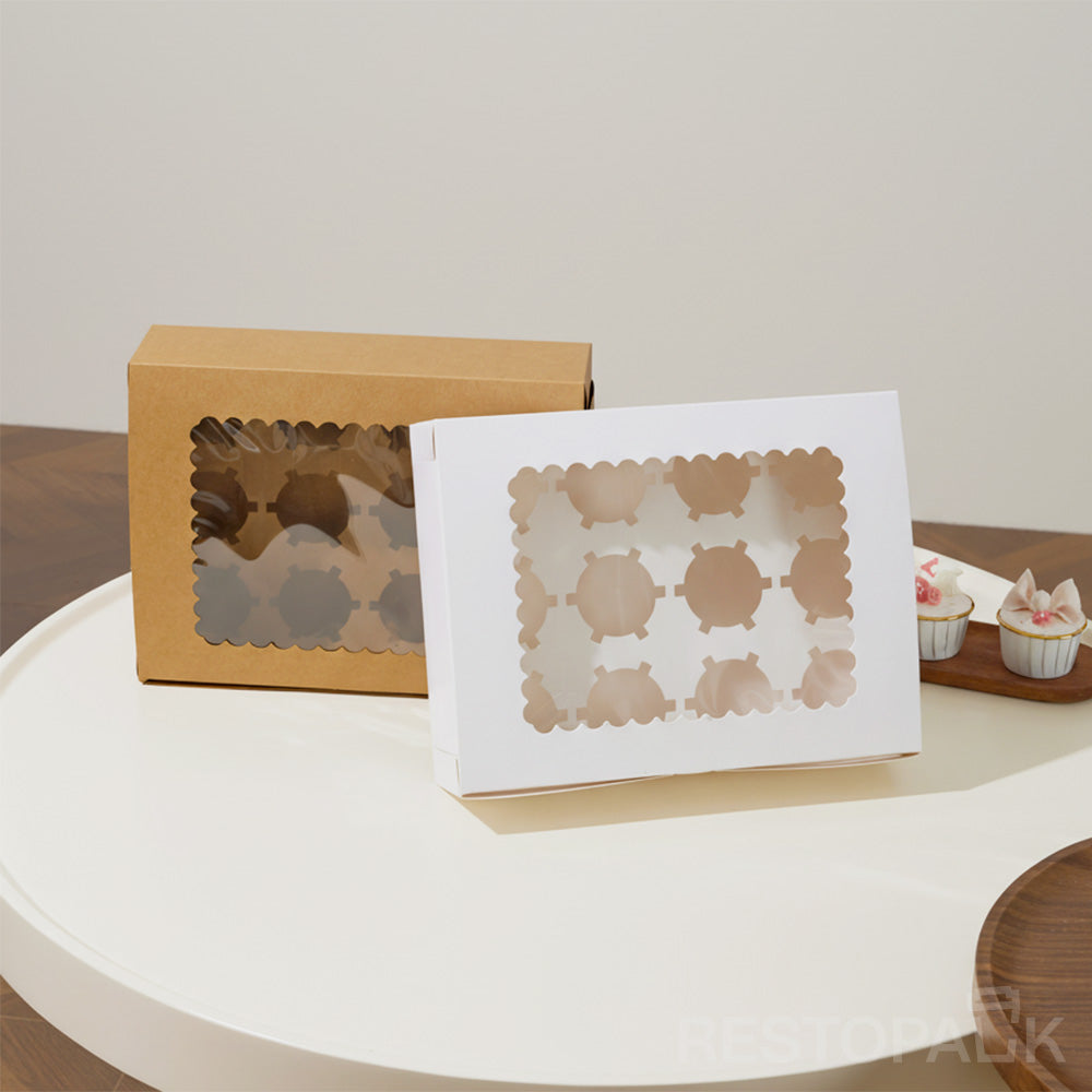 Kraft Window Cupcake / Muffin Box with 12 Slot Insert