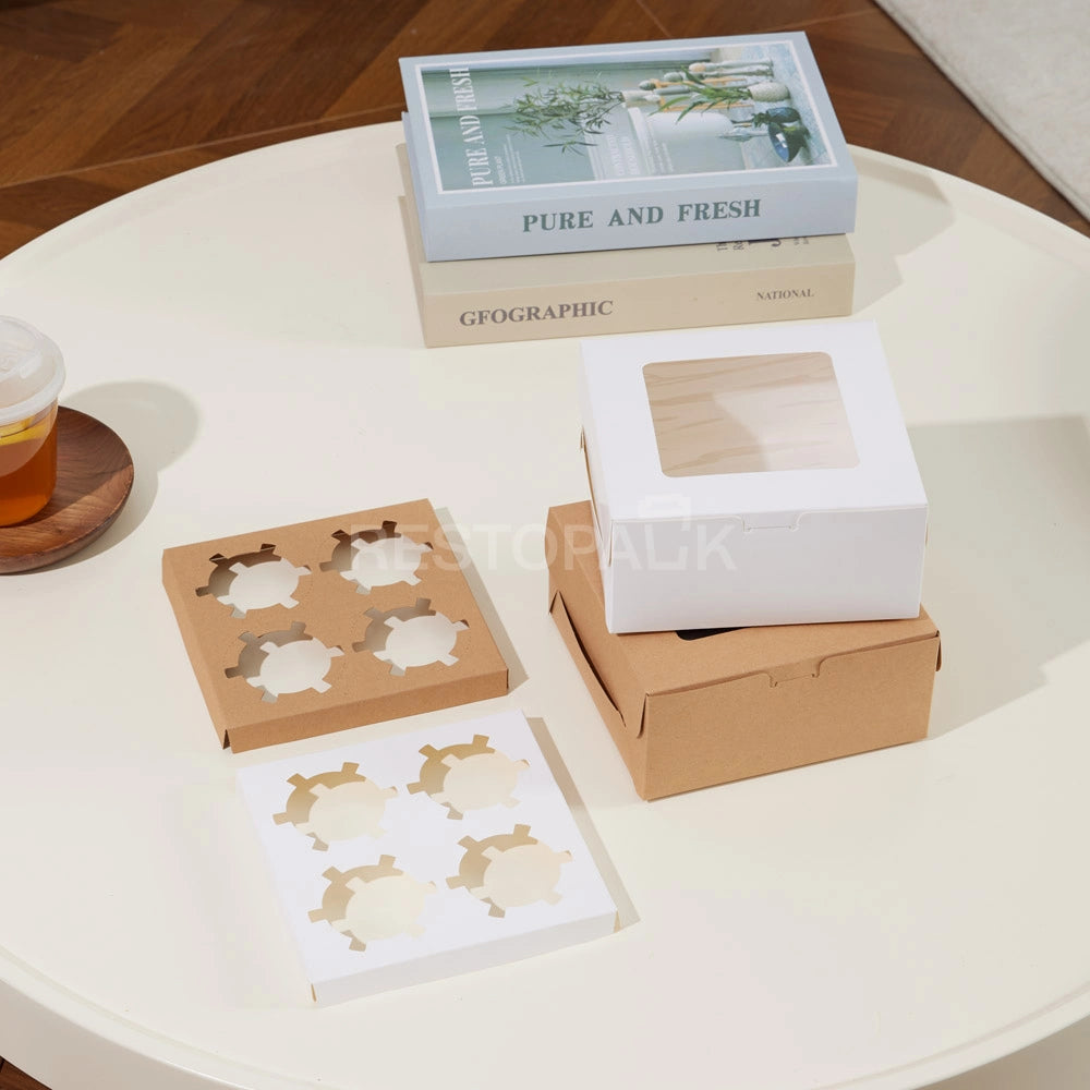 Kraft Window Cupcake / Muffin Box with 4 Slot Insert