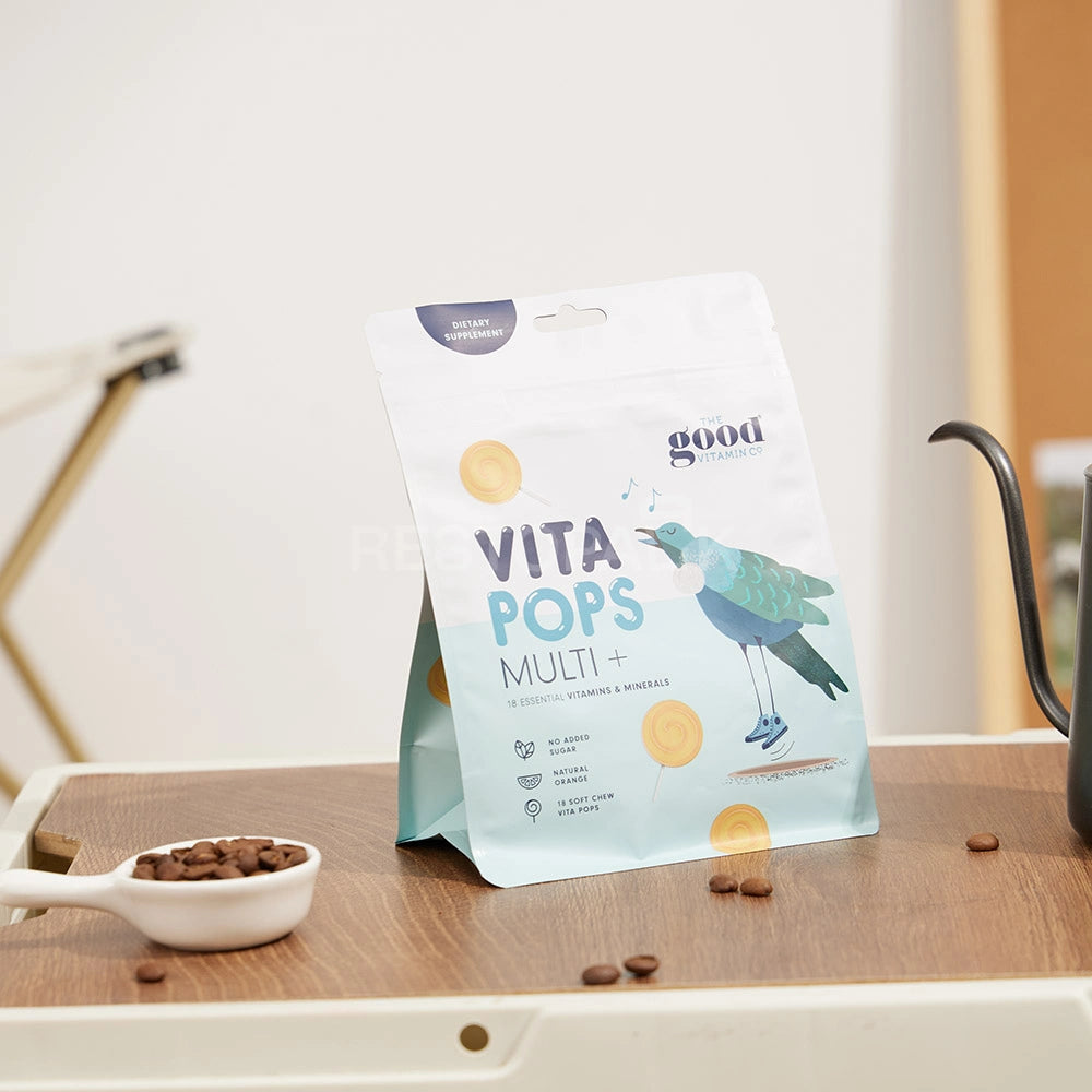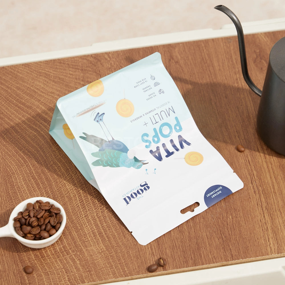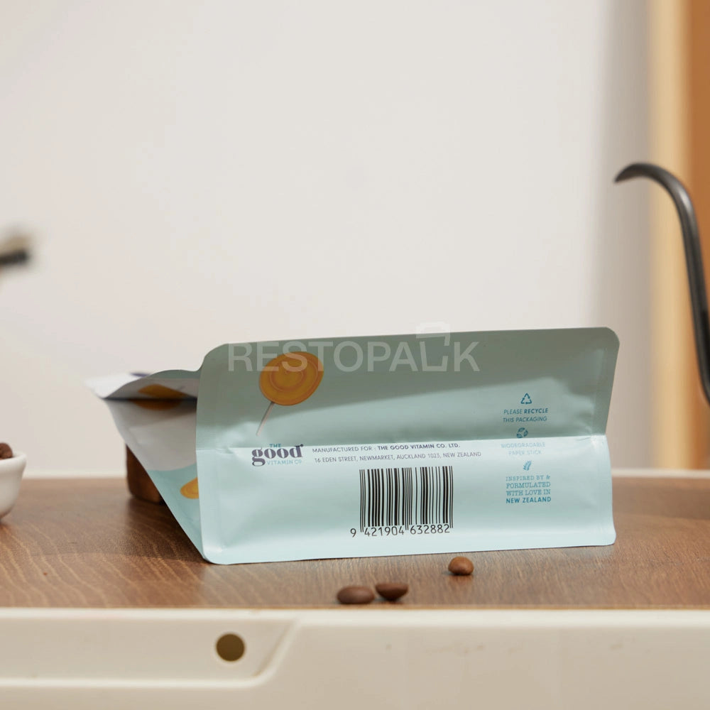 Matte White Flat Bottom Coffee Bag with Zipper, Hang Hole & Tear Notch