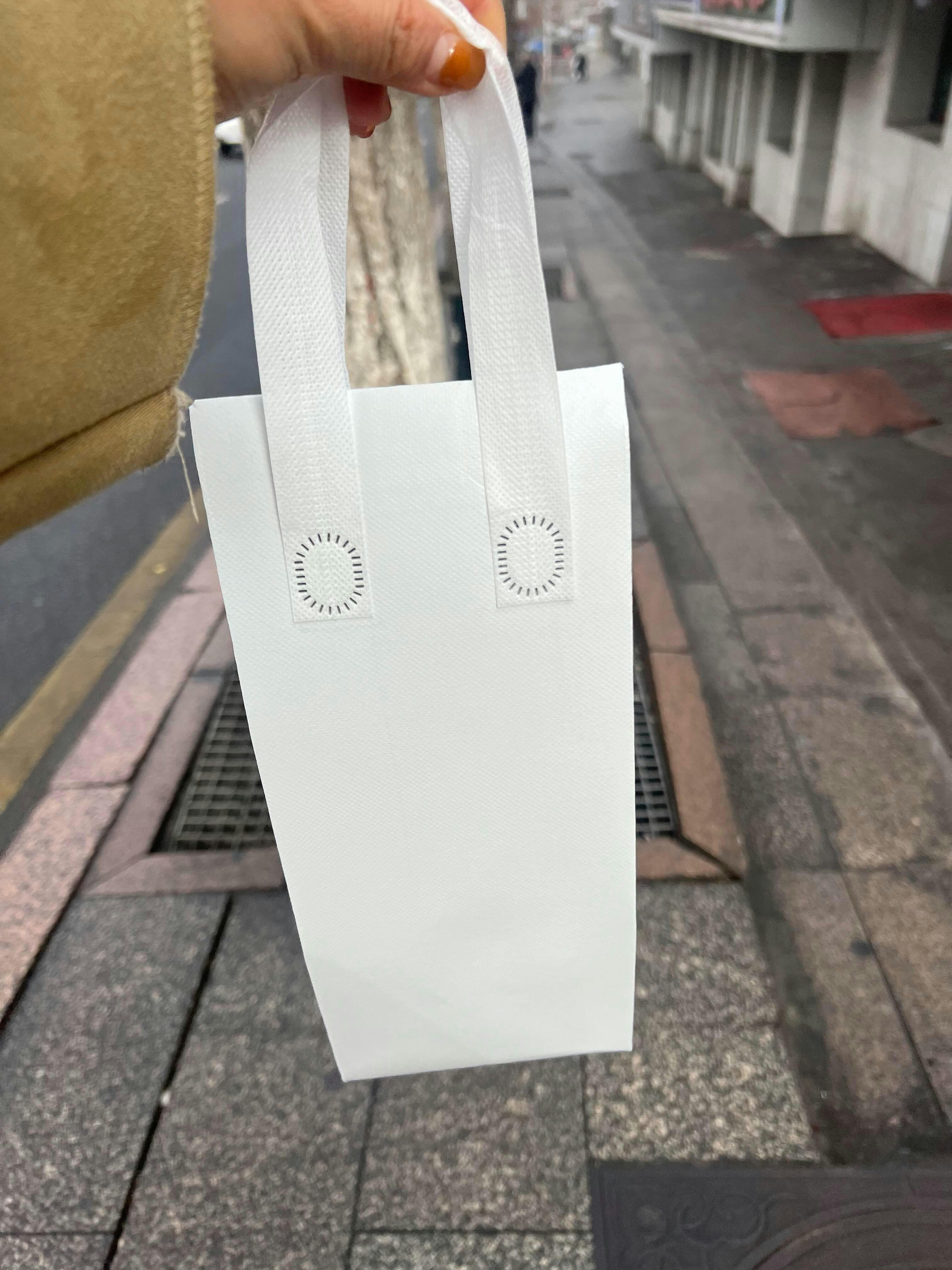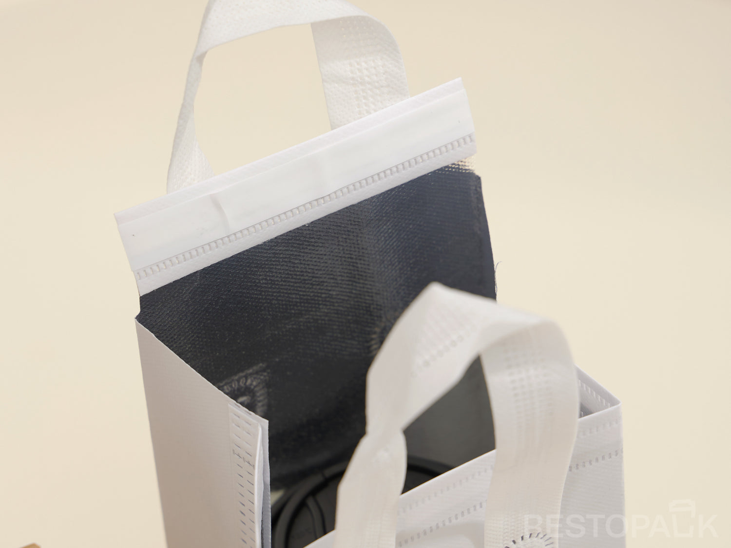 Our insulated bottle cooler bag is made from eco-friendly, recyclable non-woven fabric with an aluminum foil lining to maintain the perfect temperature for your drinks.
