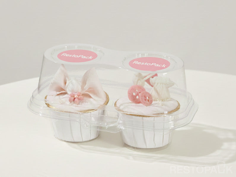 Swirl Dome 2 Compartment Hinged Clear Cupcake Container