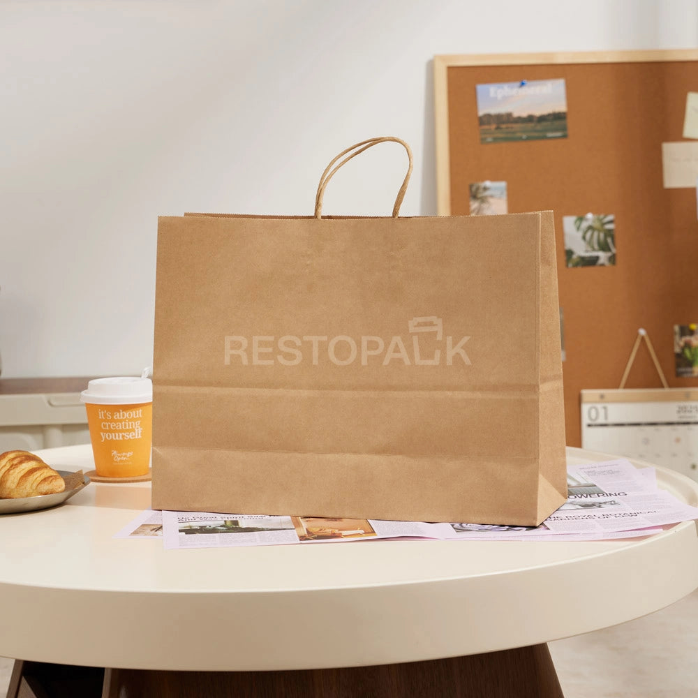 15 3/4" x 5 1/8" x 12 3/16" Tall Brown Kraft Paper Bag with Handles